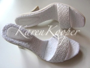 These pumps are a Women's Italian Size 40 and a US size 10. Perfect for the spring, summer or winter cruise season, these Terry Cloth Pumps in White are the hot pair to wear by the pool, beach, or for boardwalk shopping.