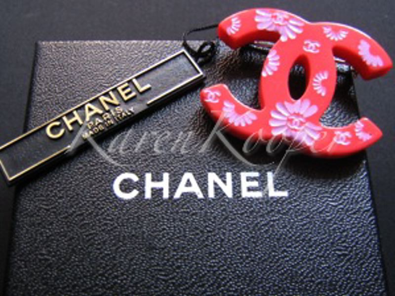 Perfect for the spring,summer or winter cruise season, the Coral Cambon Broche is the item to sport. This unique broche is that of a miniature double CC, Coco Chanel, in a pale coral hue. It is made of lightweight fine resin and is held in place on clothing by a back-pin.